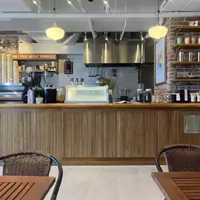 The staff wear stylish hats and the atmosphere inside the cafe is nice!