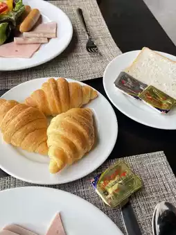 Everyone, today we have a good hotel to recommend, which is Best Western Chatuchak branch. This hotel is very good because it is near the MRT, very convenient to travel, and the hotel itself is very clean. We think it must have just opened because everything looks brand new and very clean. Let's talk about the restaurant. Here, there are croissants, sausages, and baked ham for breakfast, which are very delicious. The dining area is very convenient, divided into tables. The staff takes care of you closely and is the best. We think it is very worthwhile because the breakfast fee is included in the room fee. If anyone is looking for a place to stay, we recommend it. 📍Best Western Chatuchak