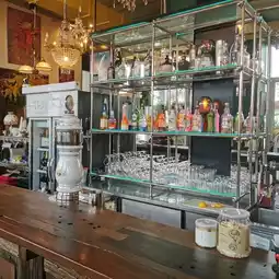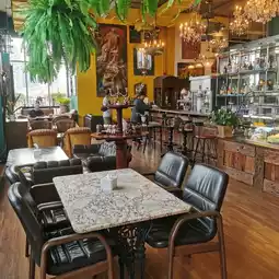 After walking around for a while, we started to feel hungry. After walking around, we came across this shop, Thai Baht Art Antique and Bistro. The shop's decorations caught our eye. All the interior decorations are vintage items. It looks very luxurious. There are many beautiful corners in the shop. I guarantee that girls who like taking pictures will definitely like it. So, let's stop by and find something to eat at this shop.