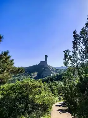 Qingtui Peak, named for its resemblance to a hanging giant hammer, stands majestic and awe-inspiring. From afar, it appears as a pillar reaching the heavens, while up close, its grandeur is overwhelming. The forest park surrounds the peak, with lush greenery and babbling streams creating a symphony of nature. Upon reaching the summit, the whistling wind echoes like ancient bells striking the valleys, resonating deeply.