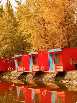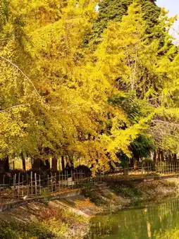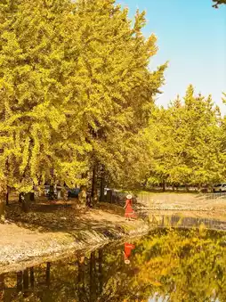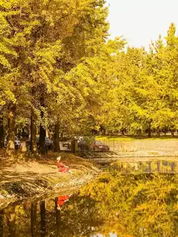 2. There is a small river next to the ginkgo forest, you can use a telephoto lens to stand on the other side of the river, you can take a picture of the bend of the river and the reflection