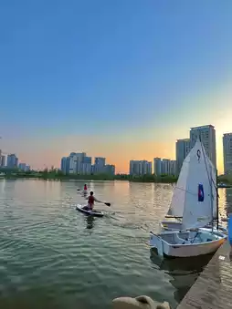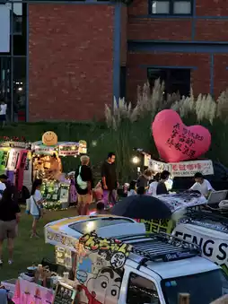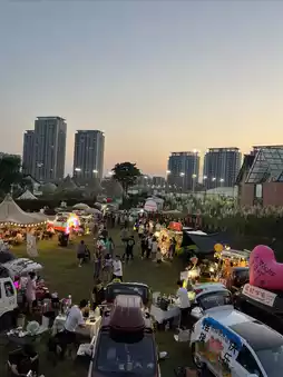 Various giant trendy cartoon dolls, pink sand beach 🏖, street basketball at Sunset Stadium 🏀, cream-colored small houses 🏠, lakeside paddleboards 🚣🏻, the three-color road trunk market on the large lawn of Maru Camping...etc.