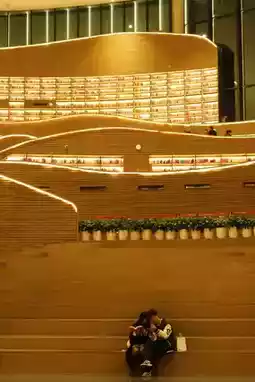 (3) Inside the library: The library has a stepped design, and it is more atmospheric to take photos when the lights are on at night;