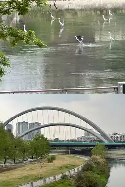 Located near Century City in Chengdu, there is the largest waterfront activity venue in Chengdu, which is Riverside Park. Riverside Park was completed in 2012 and is open to the public and tourists for free. The park has a beautiful environment, rich vegetation, and a good ecology. There are many egrets playing in the water in the lake, and the cherry blossoms in the park are also very beautiful. The bridges over the Jinjiang River by the park are also very distinctive and are known as 'Internet celebrity bridges'. The completion of the park has provided a great place for Chengdu citizens to relax, entertain, and exercise.