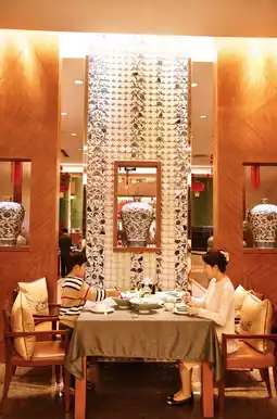 You can order the 'Hai Na Bai Chuan' set meal at the Heyue Hall Chinese restaurant on the second floor of the hotel, with attentive service from the welcome