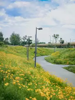 Climb to a high place and look far into the distance, overlooking from the top of the hill, and you can take in the panoramic view of the sea of flowers, which is a visual feast. Or you can take photos from the path upwards to capture the coreopsis slope under the blue sky and white clouds, freezing the beautiful cartoon-like moment.