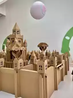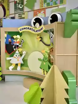 The paper castle is really fun. Children go through the maze with questions at the door and look for answers in the castle. After coming out, they look for the question mark teacher to tell them the answers and they can get forest coins.