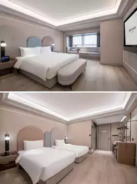 First of all, cleanliness and hygiene are a must. The rooms have a mini-bar, and drinks are free. It's a new hotel in 2023, so there's no need to worry about outdated facilities. High-floor rooms are available, which quiet-loving guests will definitely appreciate. The bathroom has separate wet and dry areas and is equipped with a smart toilet.