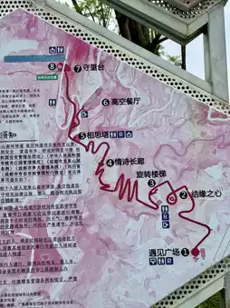Yujian Square - Heart of Fate - Spiral Staircase - Love Poetry Corridor - Lovesickness Tower - High-altitude Restaurant - Watchtower (refer to the route map in picture 12)