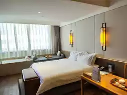 Entering the lobby, the antique charm hits your face. Carved doors and windows, exquisite Chinese ornaments, and the faint aroma of incense. The lighting in the lobby looks particularly warm on a rainy day, which instantly relieves people from the cold and wet outside. The hotel as a whole is based on wood color, adopts new Chinese traditional elements, and combines it with modern design style, which combines the calmness and traditional beauty of Chinese style with modern simplicity and practicality.