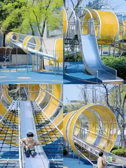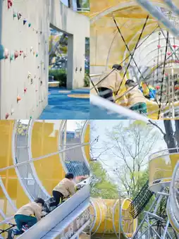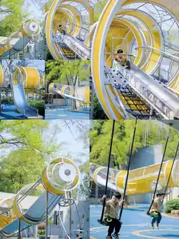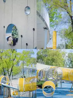 Chengdu Cloud Park is located by the mountains and rivers, with a cool breeze and large trees. It's a great place to cool down on a hot summer day. The park is not large, but it has a wide range of fun facilities: slides, climbing, swings, trampolines, sand digging, zip lines, tunnels, water play, etc. It's enough for kids to have fun.