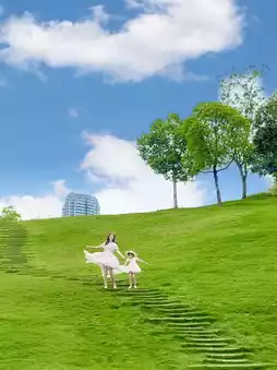 Lawn, animals, flowers, lake, blue sky and white clouds☁️Sunshine just right☀