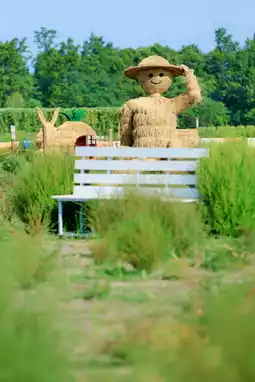 The giant straw installation in the park is the scarecrow in the memory