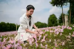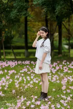 There are metasequoia trees (which will turn yellow soon, but are currently still green) and large patches of pink zephyranthes, which are very photogenic.