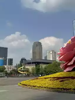 🌳 Tianfu Square is one of the largest squares in southern China. It is large and surrounded by tall skyscrapers.