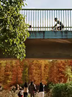 🚶Photography route: Arrive at Gate 1 at 2 pm and walk around the wetland to the left. There is almost no backlight at this time, so you can capture the most beautiful light and shadow of the metasequoia forest. Return at around 4:30 pm to make the most of the soft natural light.