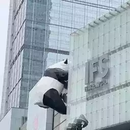 The giant panda statue climbs the IFS Building. The panda is the symbol of Chengdu. If you look from the front of the IFS building, you will not be able to see the giant panda's face. You will only see its butt and back. Tourists can clearly see the giant panda statue by taking the elevator to the 7L floor.