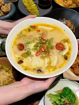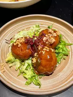 The "Floating Green and Flowing Red" vegetarian lion head is shaped like a meatball.