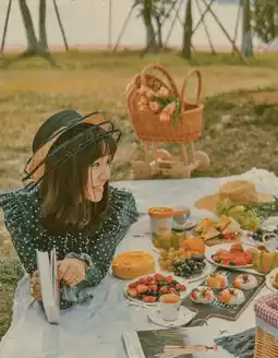 Place mats, picnic baskets, plates, hats, sunglasses, books, think about the color tones in advance, and you can bring some items with the same color.