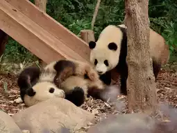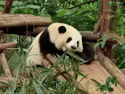In addition to giant pandas, red pandas can also be seen here. The base has all sorts of plants, a lake with wild ducks and aquatic vegetation, flowers and flower beds, and some wild birds among the bushes. There are food vendors and restaurants beside the lake, and a panda museum near to the south entrance/exit.