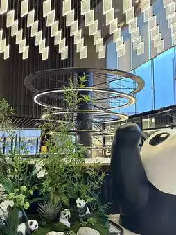 Check in the 32nd floor high-altitude lobby, and you can check in and take photos with the Chengdu Panda 🐼 elements on the first floor. ✅Chinese tea table✅Chengdu landscape memorial wall✅Thangka...the perfect collision of fashion trends and Sichuan and Sichuan culture! The tall lobby is equipped with bright crystal chandeliers and provides a sense of sight overlooking the city from high above.