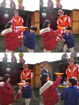 At night, the lighting ceremony begins and dancers come out to lead everyone to dance