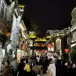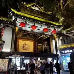 Chengdu's Jinli Ancient Street is a lively night spot where you can enjoy the night view and gourmet food. The retro buildings are brightly lit up, and it's fun to stroll around.
