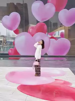 The screen is full of pink hearts 🩷 and huge stairs! !