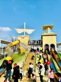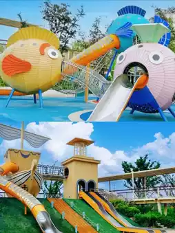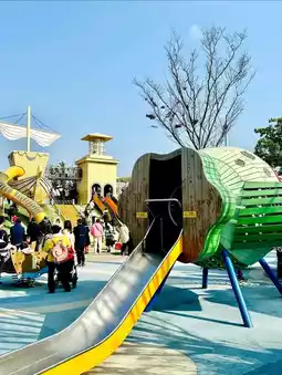 Next to Dong'an Lake Park, Yima River Park Phase II is a great place for family outings. The park offers a variety of recreational facilities suitable for children of different ages. The park's goldfish slide is uniquely designed and brightly colored, making it a popular attraction for children. In addition, there are pirate house slides, bridge slides, sand pits, zip lines, swings, and other recreational facilities to meet children's play needs.