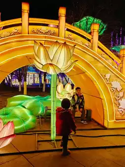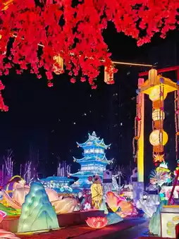 This year's large-scale free lantern festival in Chengdu is held at Jiangtan Park. The lanterns are inspired by the poems and stories of Li Bai, Du Fu, Su Shi, Lu You, and other literati, as well as the rich history and culture of Chengdu. The lanterns are built according to the four seasons of "spring, summer, autumn, and winter," and traditional intangible cultural heritage lanterns and new light and shadow installations are incorporated. In addition, there are elements such as "door god panda," "Fuxi and Nuwa panda," "panda tug-of-war," and "Sichuan opera face-changing panda." This lantern festival is well-organized.