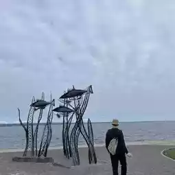 Walking along the riverbank, you come to the gate of the Xue Tao Memorial Hall, with its red walls and green tiles. A tall ginkgo tree stands in front of the gate. Inside the gate is a courtyard with a white sculpture of Xue Tao. The base of the sculpture is inscribed with "The Female Scholar by the Wanli Bridge," which is the theme of the memorial hall's exhibition.