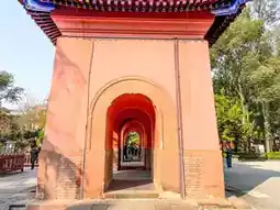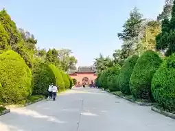 Wuhou Temple, a temple dedicated to Zhuge Liang, is surrounded by a large green park. The trees that stretch out deep along the wide road and the grand entrance gate are quite large.