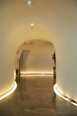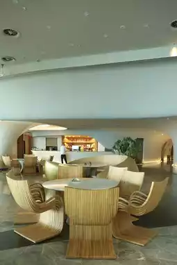 🍴The restaurant, located on the basement level, features a cave-like design with unique tables and chairs.
