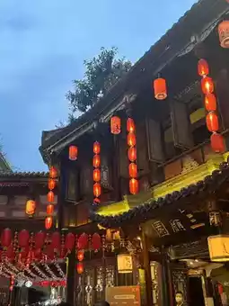 At dusk, lanterns light up the street, adding a poetic atmosphere. Find a teahouse, order a cup of Gaiwan tea, and watch street performers change faces and play the guqin. The slow life of Chengdu is fully displayed here.
