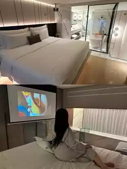 The service is impeccable! Breakfast 🥯 is available 24 hours a day, so someone like me who starts their morning at noon can still have breakfast 🥹. It's carefully plated and arranged according to my booking time and delivered to the room, full of ritual. The butler is online 24 hours a day and is super attentive 🙋🏻♀. I was craving takeout late at night, and it was delivered to my door in no time. This time, there were three of us traveling together, and the butler made the sofa bed early, which was so thoughtful.
