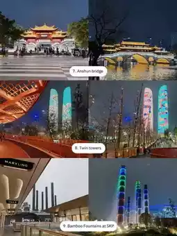9. Bamboo fountain at SKP Bamboo fountain at SKP mall, this place is very popular, many people share it on TikTok, the real thing is really beautiful and magnificent. Anyone who comes here should bring a clear umbrella to take pictures under the waterfall. You will get a very beautiful and unique picture. As for SKP Mall, it is a high-end shopping mall with branded brands. There are few food items and they are very expensive. 🚃 Travel: Take the metro and get off at Jincheng Plaza Station. When you come out, you will see the Bamboo Fountain. Walk for another 500 meters.