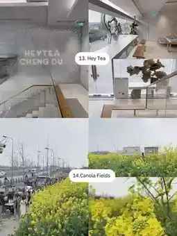 14. Canola fields Canola fields (some people call them rapeseed) outside of Chengdu where there is some land. In spring, they are planted everywhere. It has become another tourist attraction. Mostly locals go there. There are many lively shops in front. 🚃 Travel: Metro line 8,9, get off at Sanyuan station.