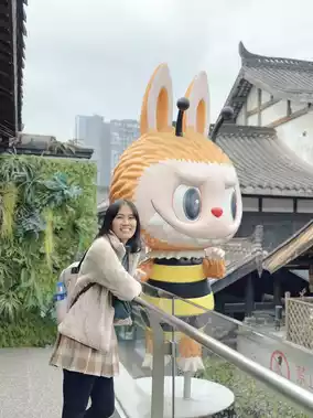 Taking pictures here has a beautiful view. You can see beautiful ancient Chinese buildings with Labubu. And this branch also has many big characters. Take a look at our picture for an example. Or you can come and visit by yourself. #Chengdu attractions #Chengdu #Chengdu travel #popmart #kuanzhaialley