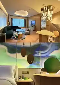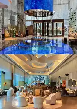 The hotel's exterior is very W, in line with its urban positioning. Walking into the hotel lobby, the first feeling is that it's a social butterfly's stage, very suitable for young men and women who love to show off. Wherever your eyes land, you are the focus. The lobby's design is inspired by the water elements of Jiuzhaigou. W Hotels focuses on creating social spaces, and most of them create an atmospheric vibe in the form of bars, which are dynamic both day and night.