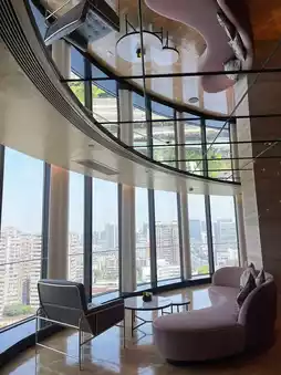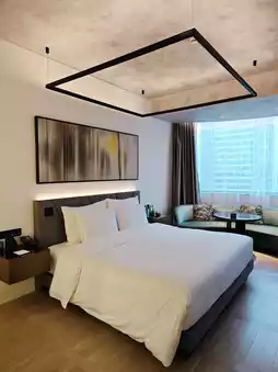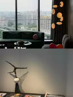 The lobby's crystal chandeliers are blingbling like a European palace, while the rooms take a minimalist high-end approach. The natural wood furniture paired with floor-to-ceiling windows creates amazing lighting, and all the toiletries are from luxury brands.