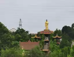 Two iconic statues stand out in particular: a towering 9.9-meter golden statue of Amitabha Buddha atop Mount Muma, gazing down at the winding Willow River below, and a 7-meter-high bronze statue of Guanyin holding a purification vase, radiating compassion. When sunlight pours over them, the statues shimmer with golden light, as if bathed in divine radiance. These two statues, one high and one low, create a striking visual spectacle.