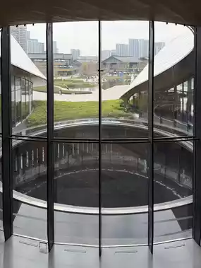The architecture is simply amazing with smooth curved lines and tall roof, which gives off modern and majestic feeling. The signature giant statue in the center of the parking featuring a running man, which instills vitality in the atmosphere, was also iconic.