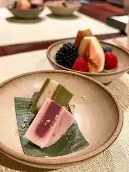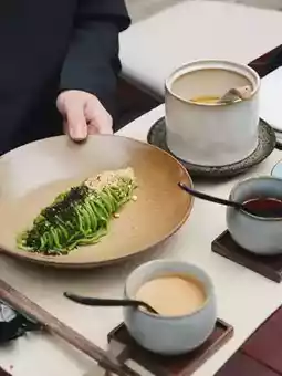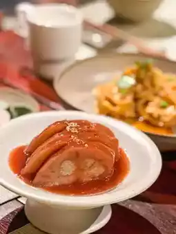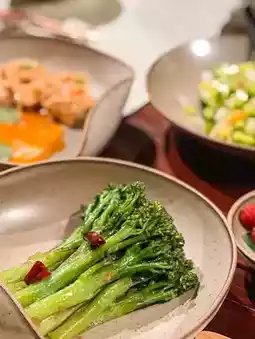 The teahouse features a thoughtfully curated selection of premium Chinese teas, served with elegance and care. Each tea is complemented by delicate vegetarian dishes, ranging from steamed buns and seasonal vegetables to artistic desserts, all presented beautifully and offering a nourishing experience.