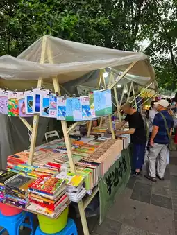 There are also a lot of entertainment activities in the park, including children's playgrounds, artificial lake cruises, singing and dancing performances by citizens and groups, and a market consisting of various stalls, where snacks, teas, and cultural and creative handmade products can be found. The blind date corner where parents exchange marriage information for their single children is also a major feature of People's Park.