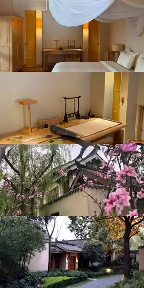 • Rooms: Only 6! Golden nanmu tea tables with Shu embroidery screens🪭, private courtyard hot springs scattered with ginkgo leaves🍂, minibar with free-flowing Moutai🥃