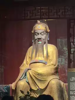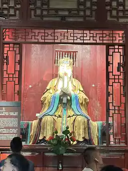 Zhuge Liang Hall Gold-leaf statue + "Heart of the Army" plaque Whisper "星落五丈原" (his death at Wuzhang Plains) — staff nod respect.