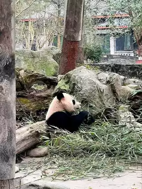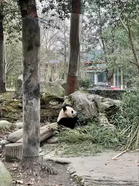 Visitors can stroll on leafy trails to see pandas of all ages play, rest, eat bamboo, or interact during feeding times (best in the morning) .