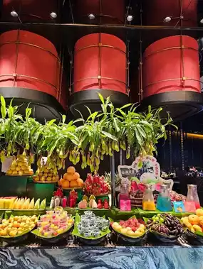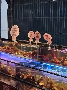 Yong Rong Hui is a high-end, black and gold themed seafood buffet restaurant located in Chengdu IFS. It's known for its "seafood freedom" concept, offering a wide variety of live and fresh seafood, including unlimited Boston lobsters (with half-portions per person), crabs, and shrimp, which are prepared by staff after selection from the live tanks. Besides seafood, the buffet also features a large fruit selection, including tropical fruits and durian, Haagen-Dazs ice cream, a diverse range of cakes and desserts, and various drinks, including fresh coconuts. The restaurant provides a luxurious and elegant dining experience with quality service.