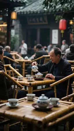 🌆 Afternoon: Stroll Kuanzhai Alley (free, explore main + side lanes). Must-see: Kailu, Brick Culture Wall, Sanlian Bookstore. Snacks: Tangyou Guozi ¥10, Sandanpao ¥15, Bingfen ¥12. Walk 15min to People's Park - Sip tea at Heming Teahouse ¥25 (2hr chill time). Watch ear-cleaning (optional, ¥40+).