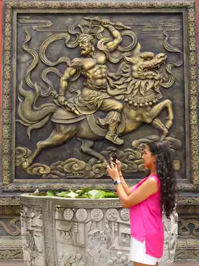 The clamor of Chengdu’s streets dissolved the instant I passed through Daci Temple’s towering red gates. Incense drifted upward in fragrant ribbons, weaving through the warm air. Golden rooftops shimmered like treasure, guarded by stone lions with fierce, eternal stares. Monks in saffron robes glided across the courtyards, their steps in rhythm with the low, resonant chant of sutras echoing from the Mahavira Hall. I lingered before towering Buddha statues, their serene gazes both humbling and comforting. In the temple gardens, ancient cypress trees whispered in the breeze, their roots tangled deep in centuries of history. Every sound—the soft ring of a bell, the shuffle of prayer beads—seemed to slow time itself. When I emerged back into the neon-lit chaos of the city, I felt lighter, as if I carried a pocket of the temple’s stillness in my chest, a quiet reminder of peace in the heart of motion.